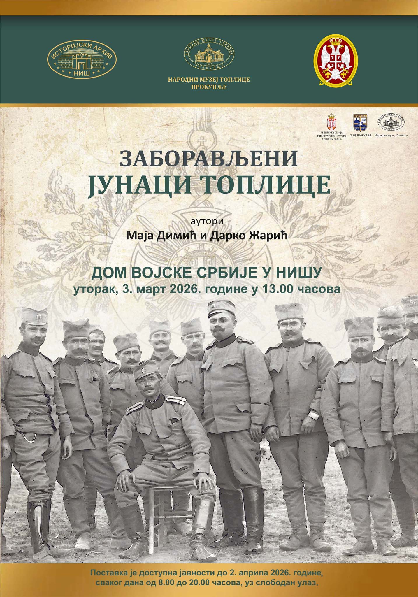 | Позив на отварање изложбе Народног музеја Топлице „Заборављени јунаци Топлице“ |